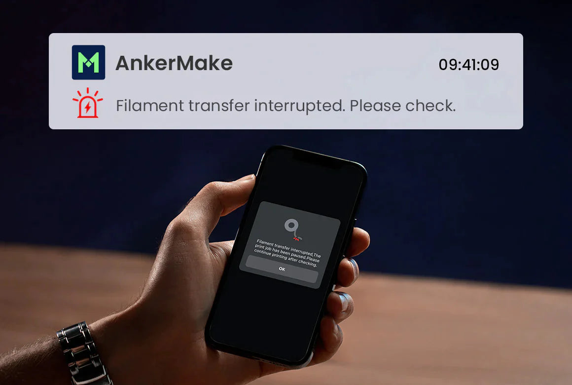 Mit der AnkerMake App können Sie den Druckvorgang jederzeit in Echtzeit verfolgen. Selbst wenn es 3 Uhr morgens ist, können Sie dank adaptiver Lichterkennungsalgorithmen den Fortschritt Ihres Drucks überprüfen.