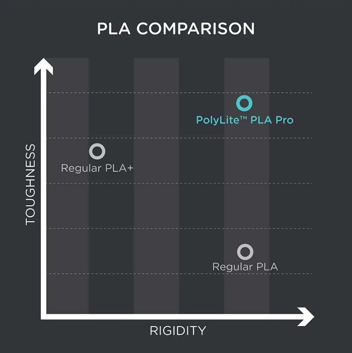 PLA PRO mit hervorragender Kombination aus Schlagzähigkeit und Steifigkeit - Polymaker PolyLite PLA PRO ist ein zähigkeitsverbessertes PLA-Filament, das eine noch höhere Schlagzähigkeit als normales ABS aufweist. Gleichzeitig bietet es eine 1,6-fache Steifigkeit im Vergleich zu anderen zähigkeitsverbesserten PLA-Filamenten. Die exzellente Kombination aus Zähigkeit und Steifigkeit ist ein echter Durchbruch für die 3D-Drucker-Filamentindustrie und macht es perfekt für mechanisch anspruchsvolle Anwendungen.