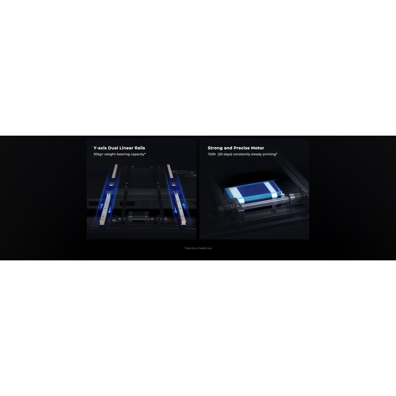Der Motor, der die Y-Achse antreibt, ist leistungsstark und präzise und sorgt für eine reibungslose und präzise Übertragung. Dank den zwei CNC-gefrästen Präzisions-Linearschienen wird die Langlebigkeit und Effizienz der Y-Achse noch weiter optimiert. Diese Schienen sind extrem robust und bestehen aus Lagerstahl, der gegen Verschleiß und Spiel widerstandsfähig ist. Sie sind viel zuverlässiger und robuster als V-Nut-Schienen, die in anderen Anwendungen verwendet werden. Mit diesen hochwertigen Präzisions-Linearschienen können schwere Lasten sicher und effizient transportiert werden.