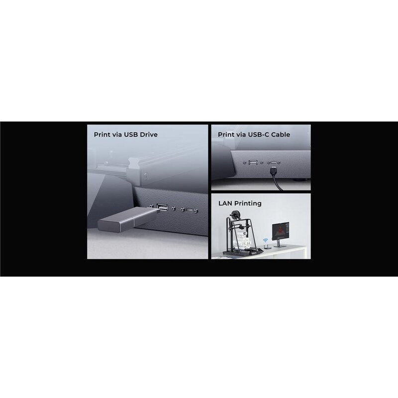 Drucken Sie über ein USB-Laufwerk, ein Typ-C-Kabel, ein RJ45-Kabel oder WiFi. Der Drucker verfügt über LAN- und Cloud-Druckfunktionen, sodass Benutzer im Handumdrehen eine 3D-Druckfarm für die Massenproduktion einrichten können.