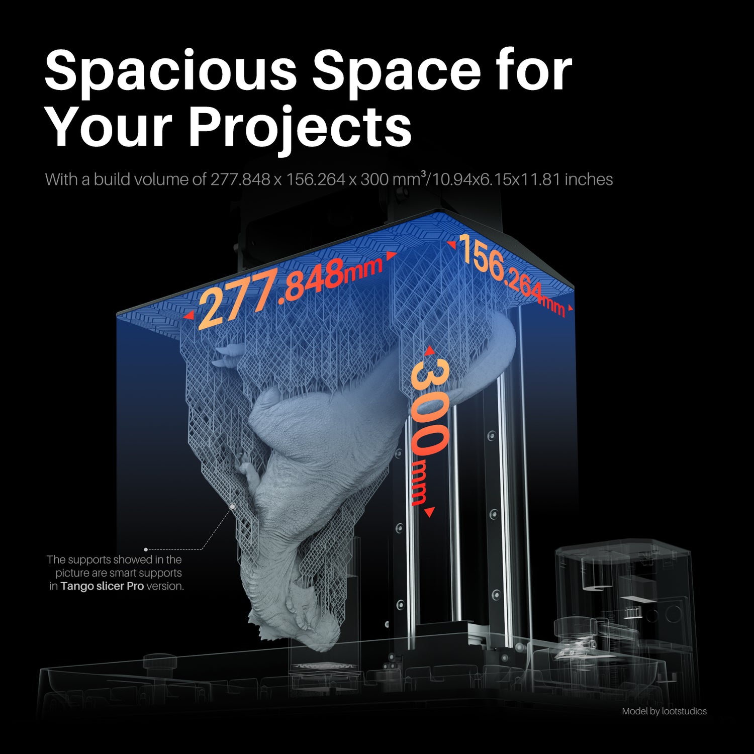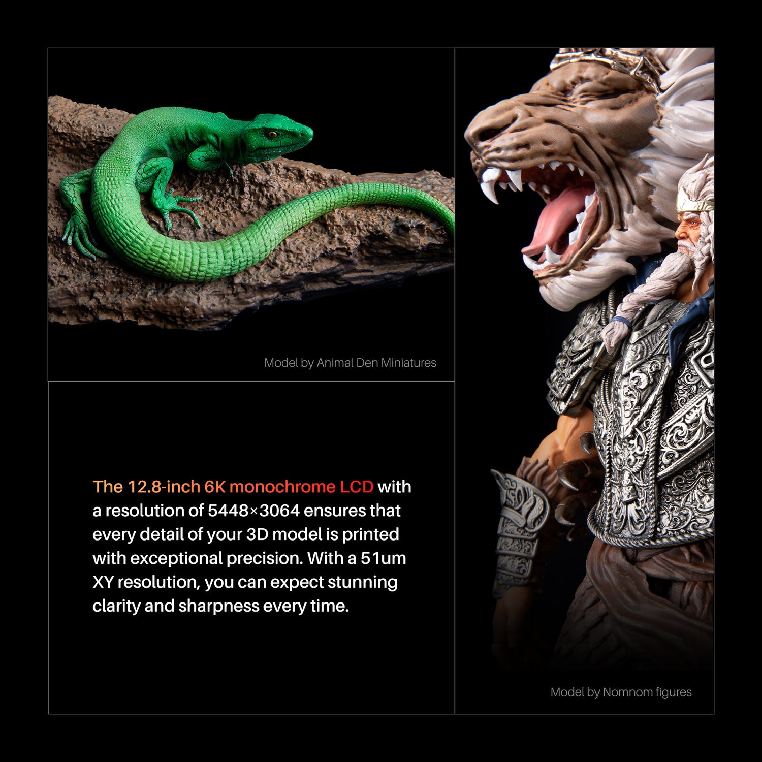 Dank des großformatigen 6K‑Displays erscheinen filigrane Strukturen, Texturen und Gravuren messerscharf – ideal für Miniaturen, Schmuck, Dental‑Modelle und technische Bauteile.