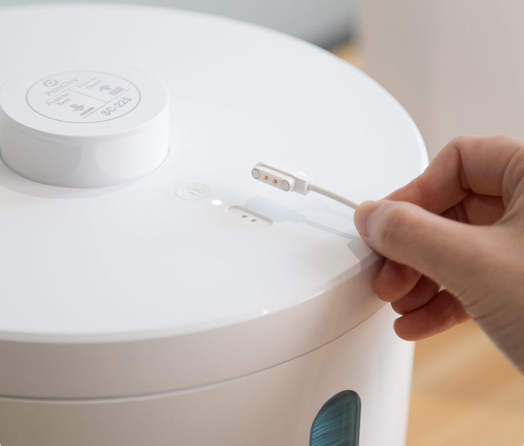 - Wiederaufladbare Batterie: Die Batterie hält etwa 2 Monate, wenn sie nur einmal am Tag geöffnet und geschlossen wird.