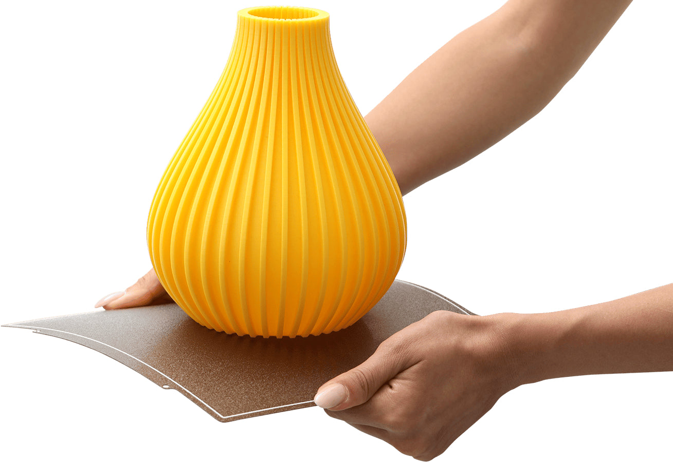 Dank seiner magnetischen Eigenschaften lässt er sich leicht vom Heizbett abnehmen und mühelos wieder anbringen.