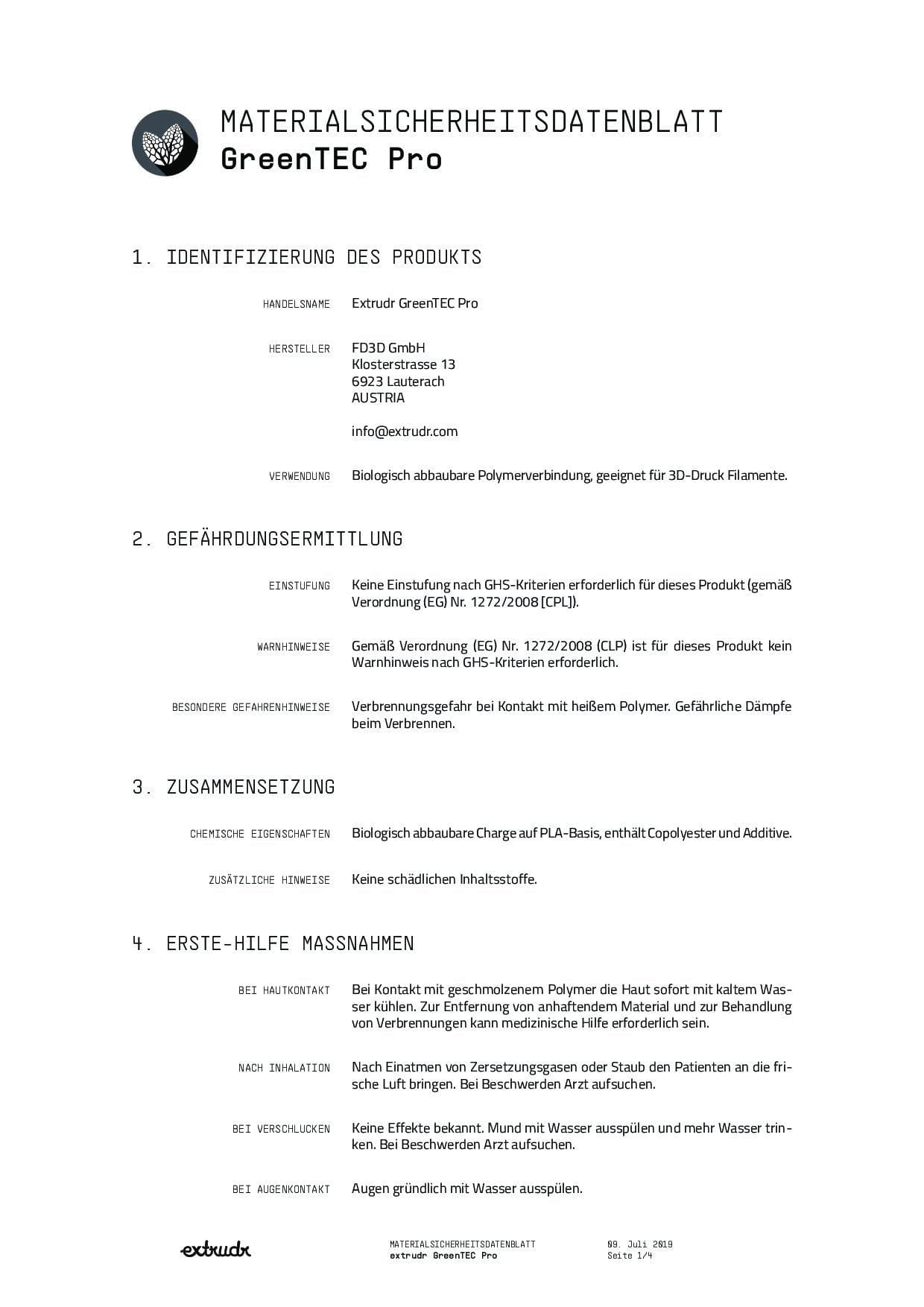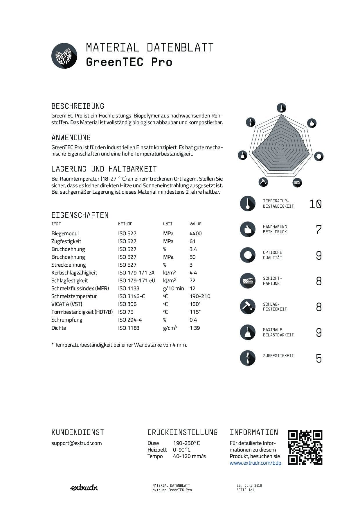 extruder GREENTEC PRO 1.75mm 800g - Black / 800g / 1.75mm is backordered and will ship as soon as it is back in stock.