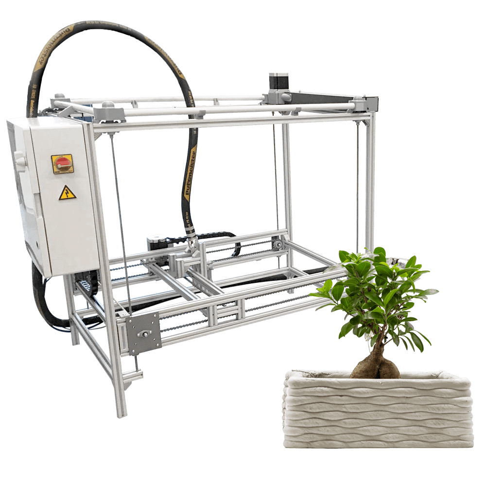 The mini printer is able to print with an accuracy of 0.5 cm on a working size of 660 x 520 x 700 mm. Thanks to the easy-to-use software, compatible with any design software, and the mechanical structure of the machine optimized for the concrete environment, you can start your 3D concrete prints with ease. Our team of experts is available to advise and support you with your 3D printing project.