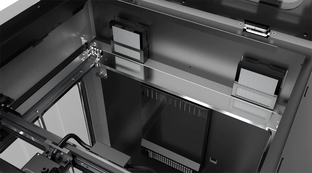 Le filtre à air HEPA 13 inclus garantit que les fumées et particules dangereuses sont éliminées avant qu'elles n'atteignent l'extérieur de l'imprimante.