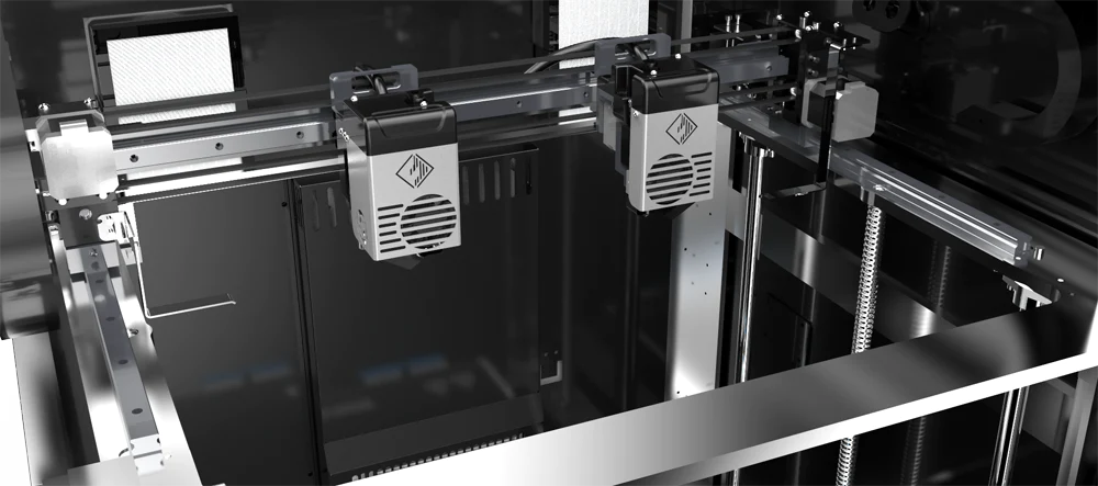 Creator 4 est une imprimante 3D solidement construite composée de composants en acier inoxydable avec des extrudeuses IDEX. Il existe trois types d'extrudeurs pour cette imprimante, ici l'imprimante 3D est équipée de l'option HT pour les filaments techniques. Pour plus de flexibilité et de qualité d'impression avec les types de filaments à imprimer, la Creator 4 A peut également être convertie en option HS pour les matériaux renforcés de fibres de carbone ou en option F pour les filaments flexibles.