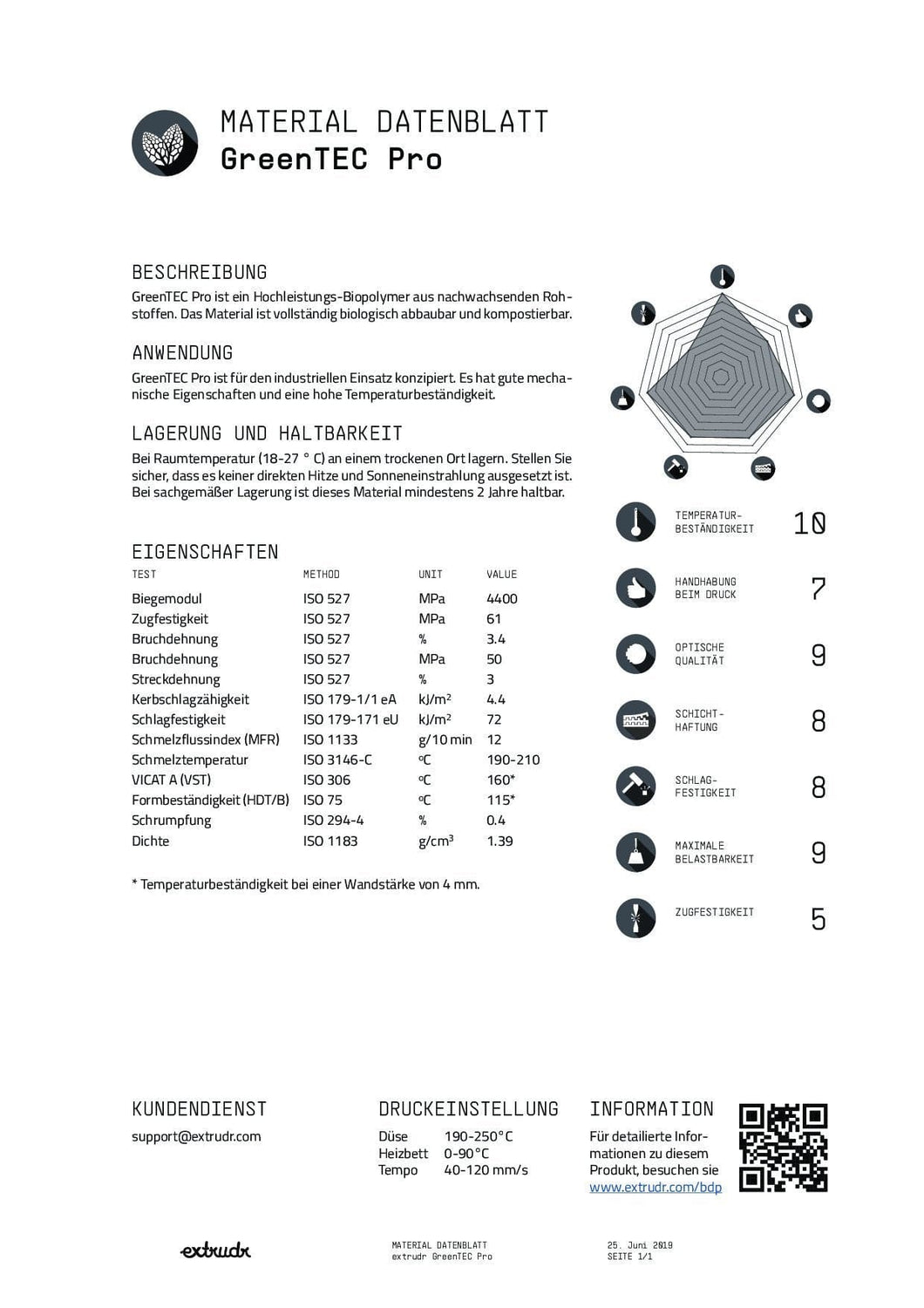 - Température d'impression : 190-250℃