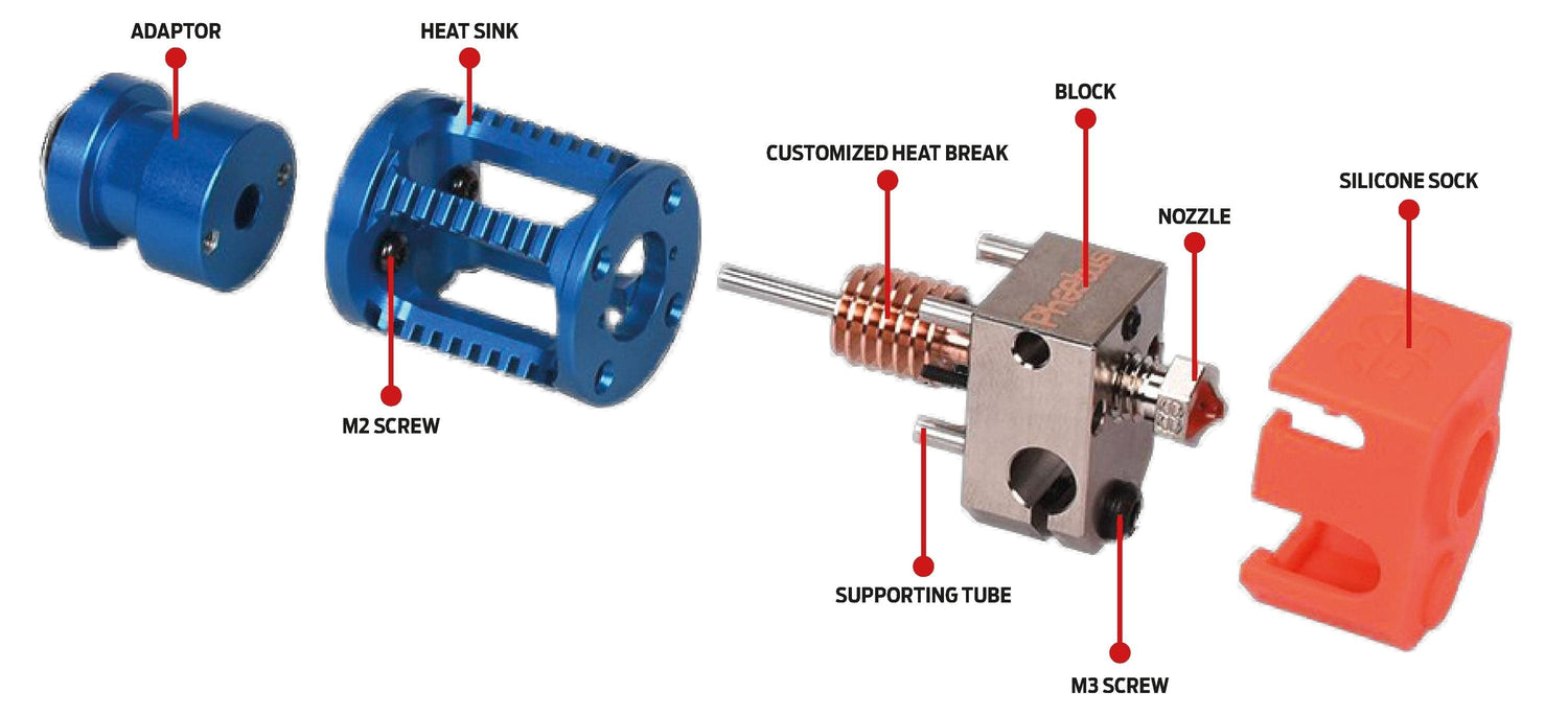 La rugosité des trous intérieurs de la buse et la rupture de chaleur Ra 0,4, qui permet un mouvement plus fluide du filament, résultant en une résolution plus élevée des impressions.