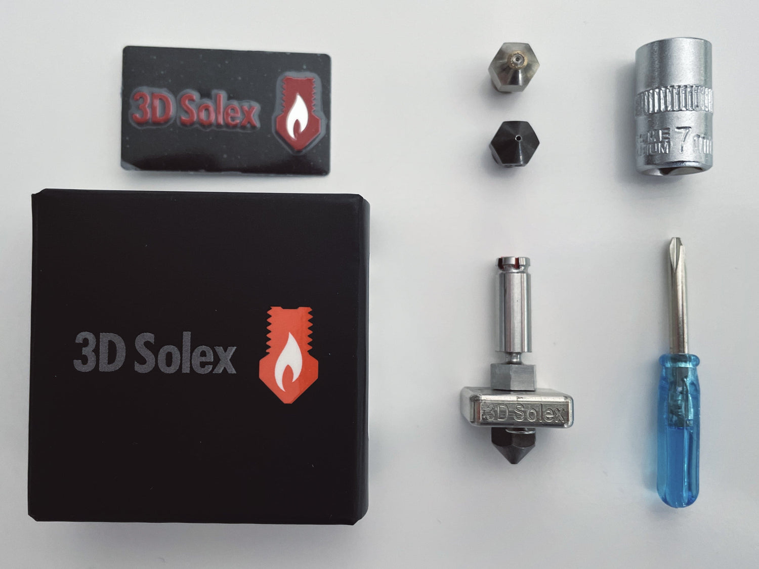 En ce qui concerne les buses, 3DSolex propose un large choix de buses standards, spéciales et de tailles spéciales. Maintenant également avec CHT - Core Heating Technology - grâce auquel jusqu'à 4 fois plus de plastique peut être fondu en même temps. Cela permet des vitesses d’impression jusqu’alors inédites.