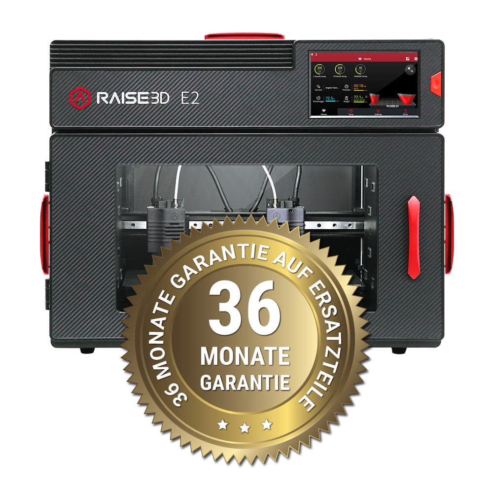 A compter de la date de facturation ou de la date d'installation, l'extension de garantie court à 36 mois pour Raise3D E2 / E2 CF. Une extension de garantie doit être activée via le portail 3DDistri sur www.3DDistri.com avec un code produit correspondant. Cela doit être fait au plus tard 30 jours après l'achat.
