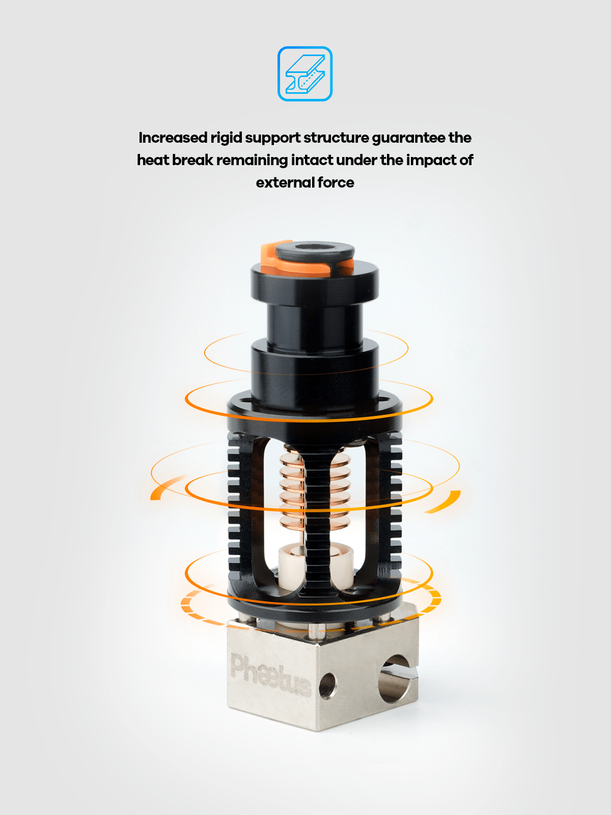 La rugosité des trous intérieurs de la buse et la rupture de chaleur Ra 0,4, qui permet un mouvement plus fluide du filament, résultant en une résolution plus élevée des impressions.