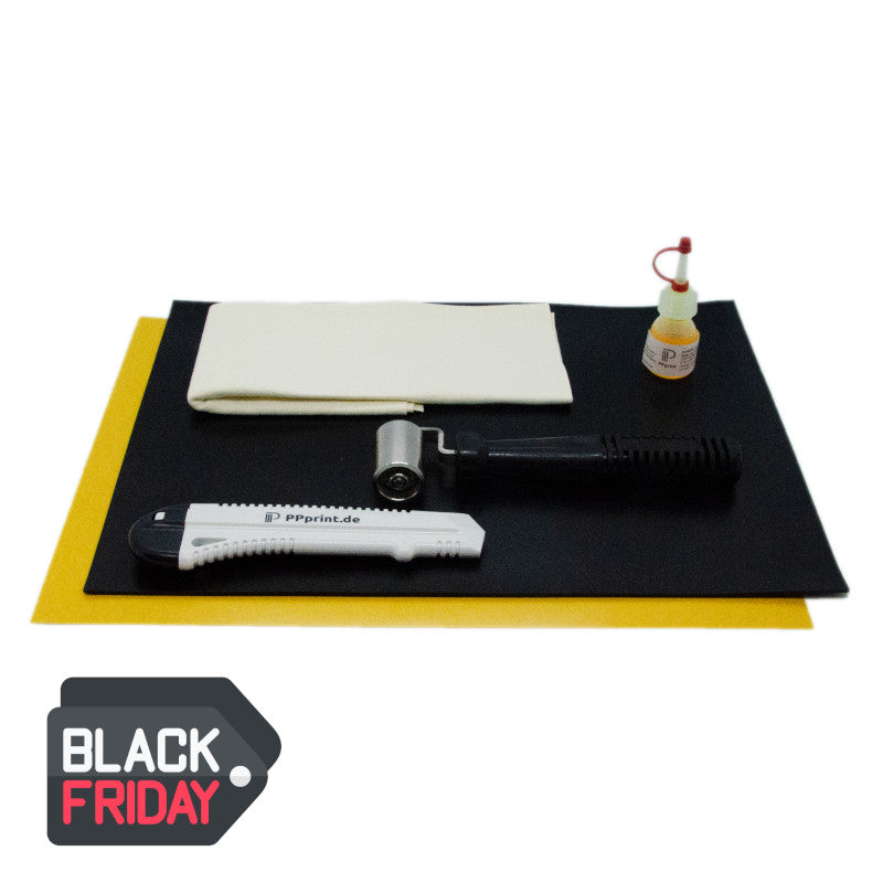 Surface P 141 en 330x240mmAdhésif P 220 en 330x240mm Rouleau P 621 Nettoyant P 10ml Coupeur P