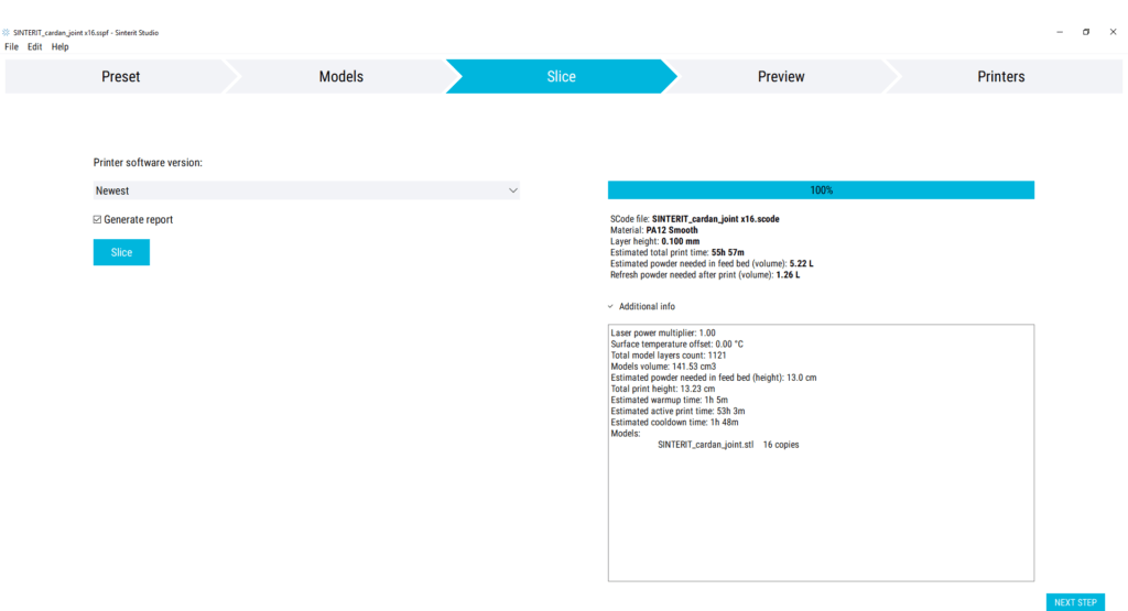 Sinterit Studio a été spécialement développé pour les imprimantes Sinterit SLS Lisa et Lisa Pro. Grâce à la procédure étape par étape et à l'interface conviviale, votre processus d'impression est simple et rapide. Le logiciel vous guide à travers les paramètres d'impression, vous aide à organiser les modèles et vous permet de surveiller le processus d'impression.