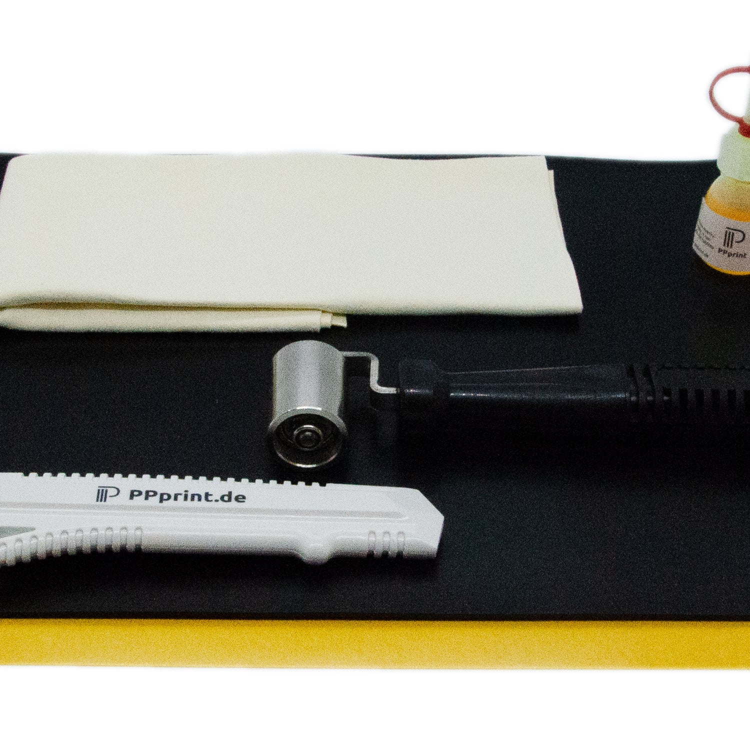 Surface P 141 en 330x240mmAdhésif P 220 en 330x240mm Rouleau P 621 Nettoyant P 10ml Coupeur P